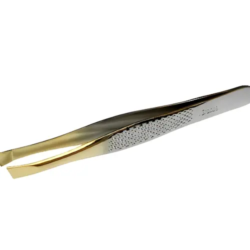 PINZA DEPILADORA PUNTA OBLICUA DORADA – Ref. 338